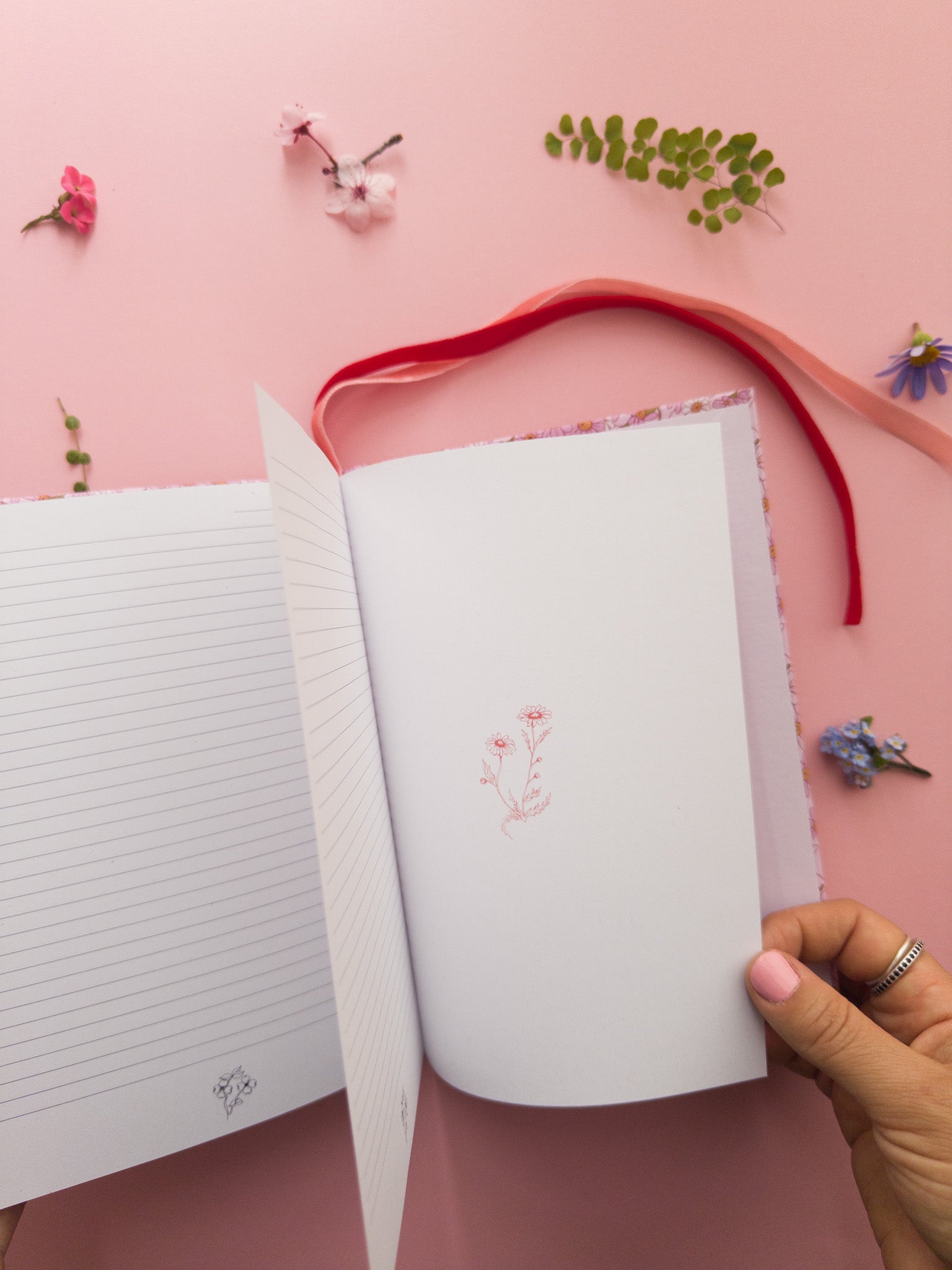 Spring means all that's pretty and pink and floral and this super sweet Journal has all the Spring vibes. With the dainty Chamomile Daisy cover, this journal features our Petite Floral pattern inside and the perfect splash of red velvet.